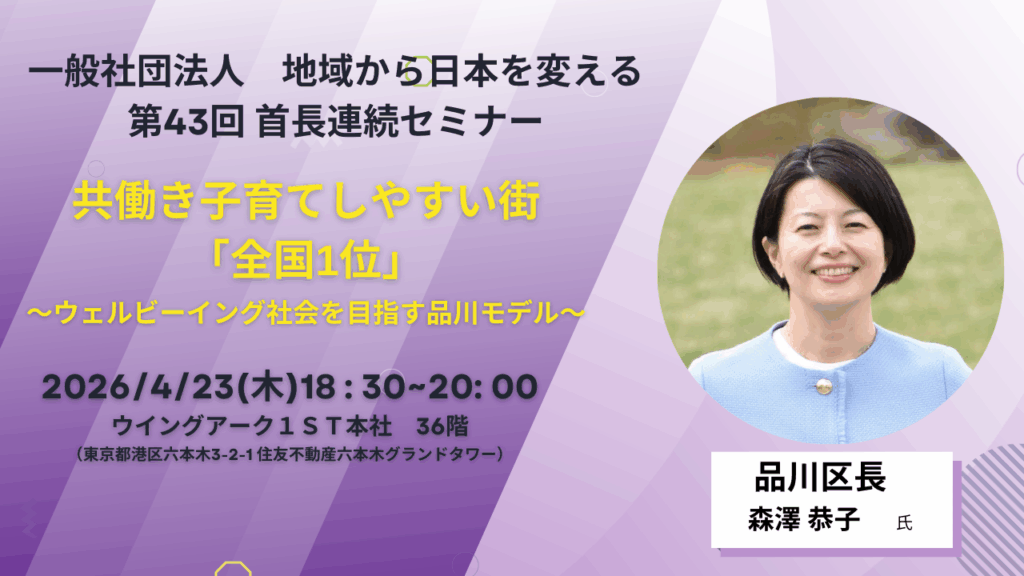 「日本のリーダーと集う」「ちにかサミット」「議員研修会」「地域首長講座検定」など、これからも各種のイベントを通じて、「日本」という最高傑作をお届けします。
