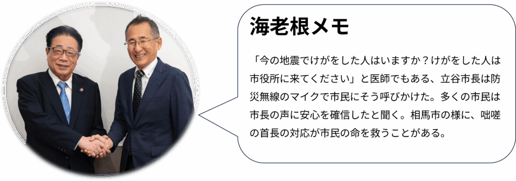 テーマ:大規模災害時の行政の務めと責任                   ~災害対応は義理と人情~