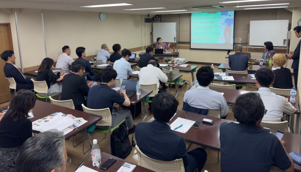 和地市長は「働き方改革で市の未来を創る」をテーマに、東大和市の課題と取り組みを紹介しました。医療費無償化の実現や公共施設老朽化への対応などの課題に触れつつ、未来のためには職員の力を引き出すことが不可欠と強調。就任後に全職員と面談し、人材育成・組織改革を推進しています。勤務間インターバル制度や女性再就職支援にも挑戦し、市民と共に持続可能な市政を築く決意を語られました。