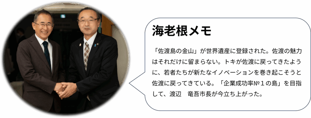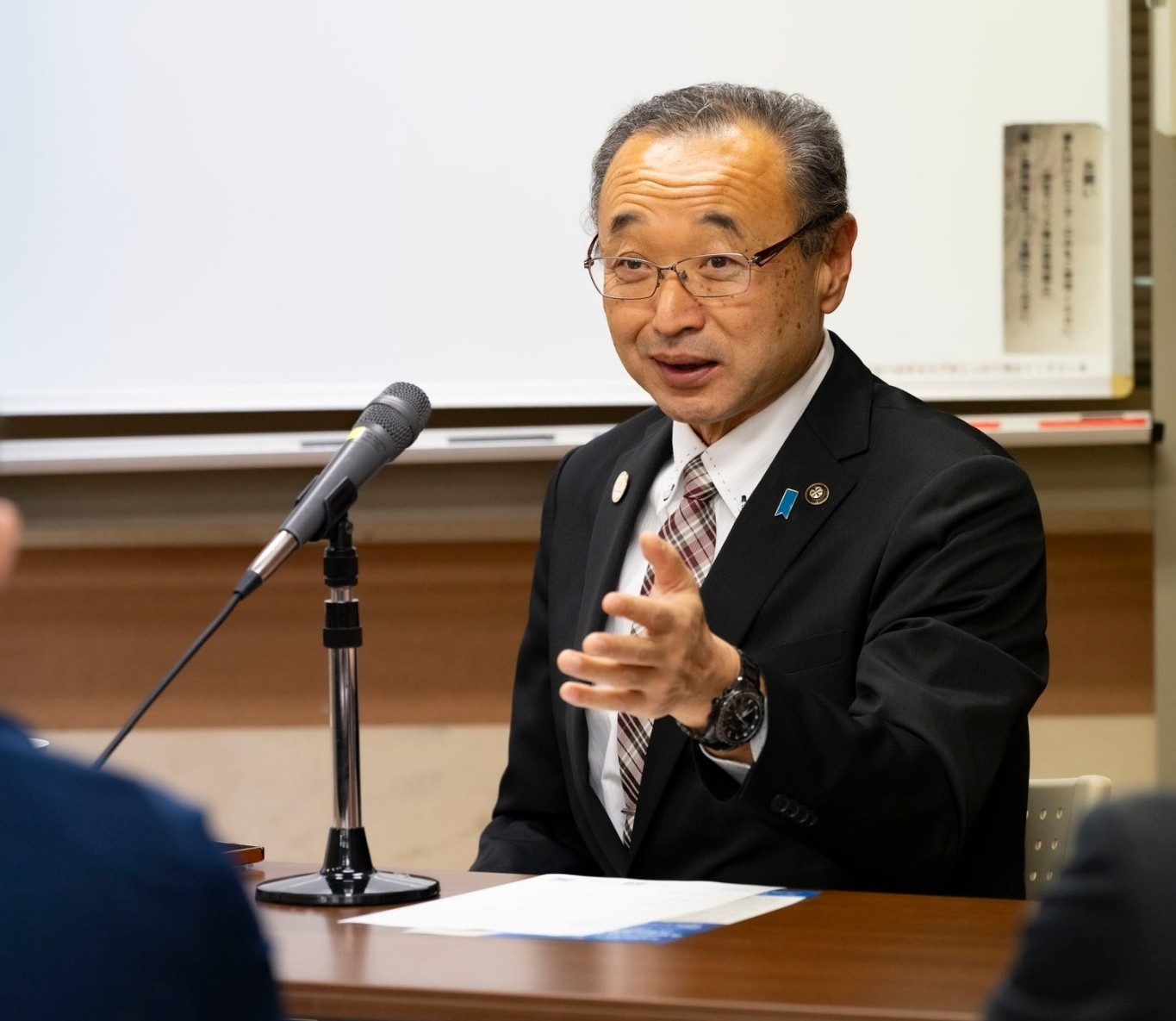 渡辺市長は「課題解決先進地佐渡」を掲げ、人口減少や高齢化などの課題を「挑戦都市の4本柱」で克服する取組を紹介しました。SDGs未来都市としてトキと米づくりによる生物多様性保全や循環型社会の推進、脱炭素庁舎やEV活用、防災連携を強化。佐渡金銀山の世界文化遺産登録や若手起業家支援なども進め、地域の誇りと若者の定着を軸に持続可能な島づくりを目指す姿勢を語られました。